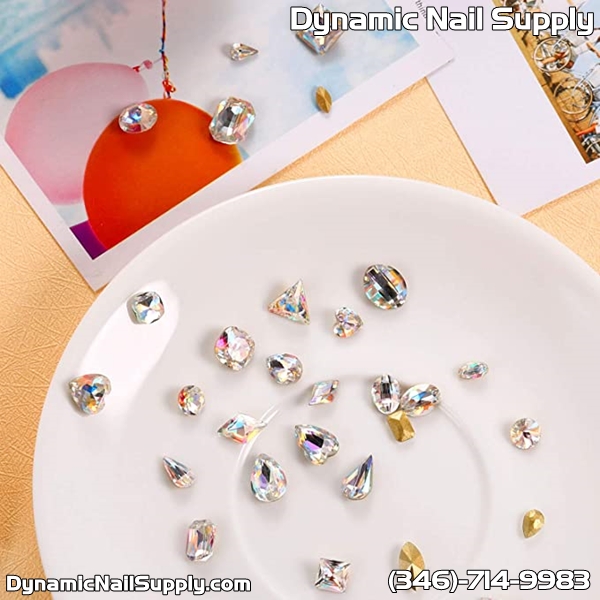 30 Pieces studs nail tips for nail art DIY, 30 different kinds of nail rhinestones, each manicure alloy glass stones has a base for easy applying to a true nail or fake nail, making your nails in different styles and more glitter.